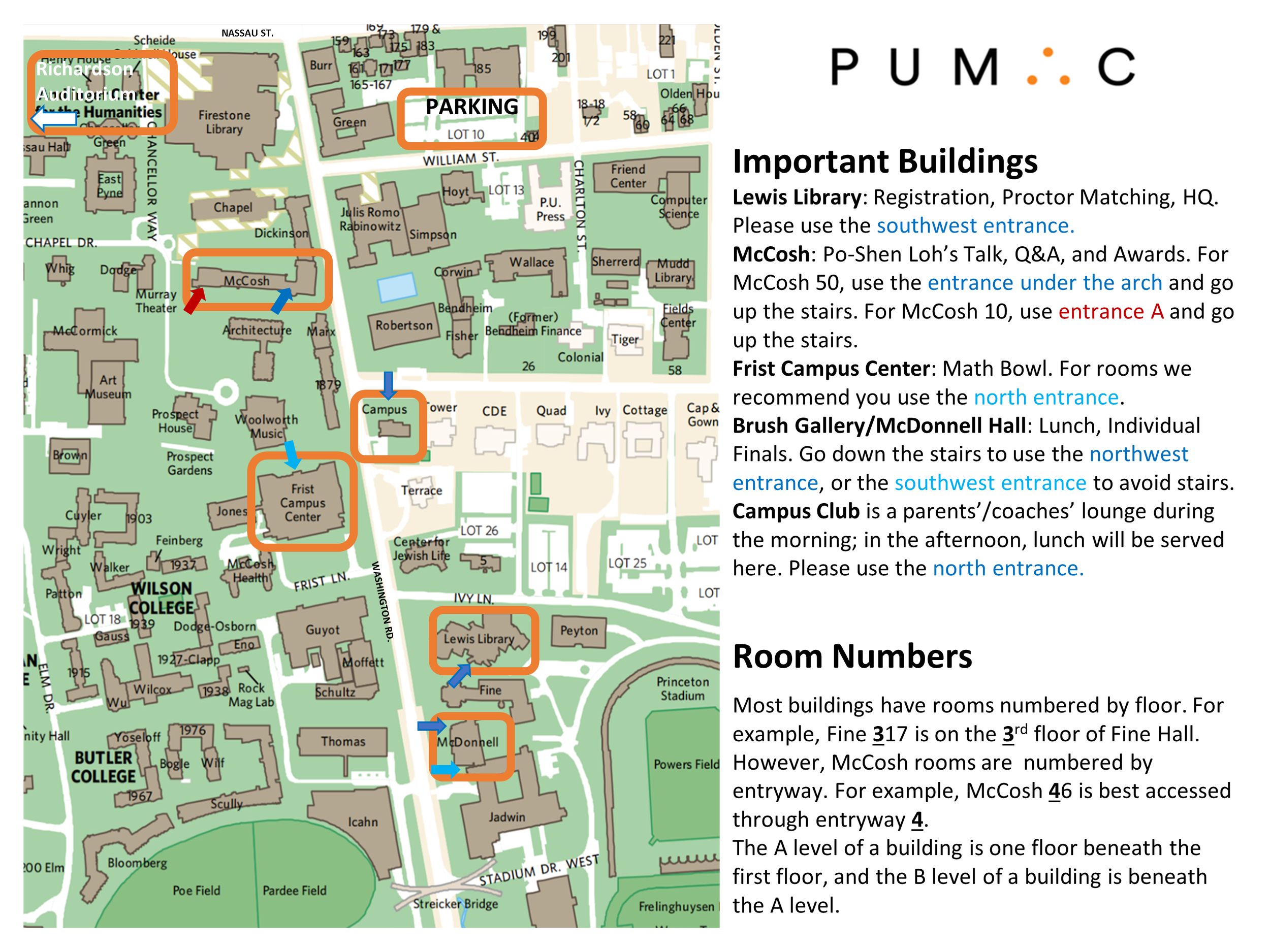 The Princeton University Mathematics Competition (PUMaC) is an annual competition run by the Princeton University Math Club. PUMaC is an entirely student-run competition; Math Club volunteers have organized PUMaC since 2006. We are now in our 18th year!